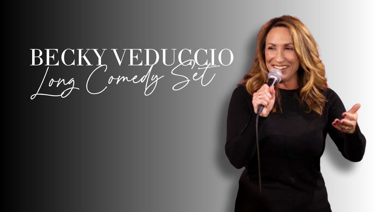 Becky Veduccio is an accomplished stand-up comedian, award-winning writer, and comedy coach who has appeared on NBC’s America’s Got Talent and in the films Maid In Manhattan, Return To Me and Random Hearts. Becky was a finalist in the national competition Ladies Of Laughter as both a newcomer, performing at Madison Square Garden, as well as becoming a finalist in the professional category in 2021. Becky performs regularly at comedy clubs in and around New York City and has shared the stage with well-known comedians such as Michelle Buteau, Joe DeVito, Jessica Kirson and Patrice O’Neal.